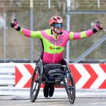 Into transition, and back into the race chair for a short lap and across the finish line. It always feels like a hollow victory for myself, with no other competitors, but the support doesn’t make it feel that way. There are loads of spectators at the finish line, all celebrating and making sure they get the obligatory photos.