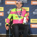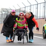Second time down the dip. Second time up the other side. Feeling good now. Complete the lap and into transition. Laura is there – ready and waiting. Straight into my handcycle and straight out onto the track. Feel good. No noticeable fatigue, no stress.